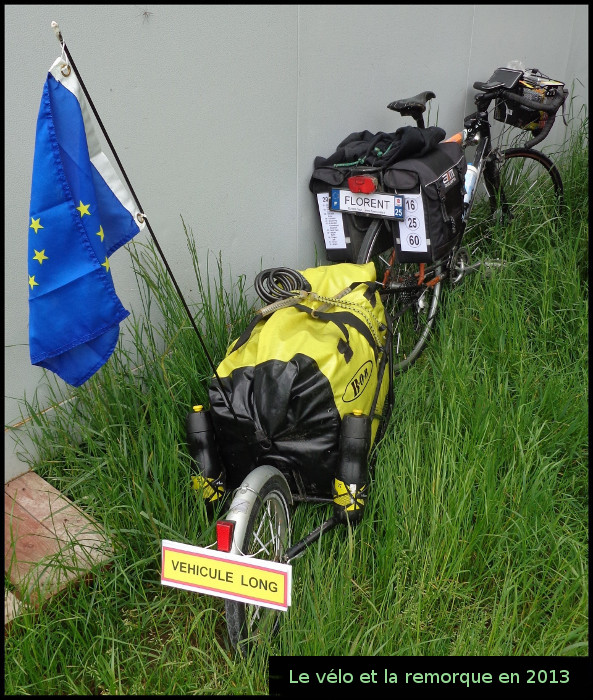 Le 21 janvier 2013, je débute le tour d'Europe, avec une remorque accrochée derrière mon vélo de course, contenant notamment une table, une chaise et un ordinateur (mon bureau).